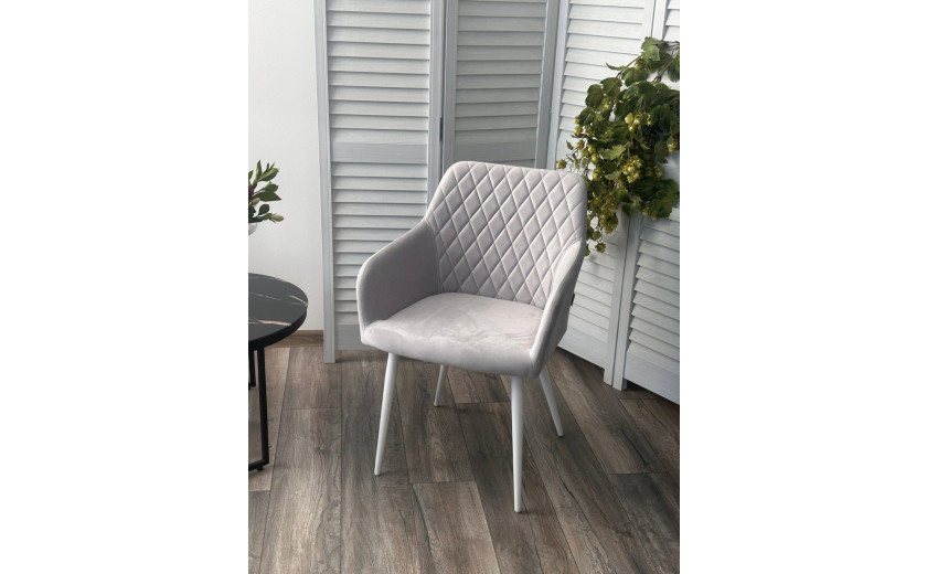 Каркас стула - цельнометаллический, белого цвета.